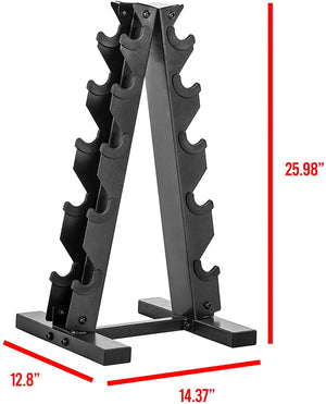 This bundle includes a pair of 5, 10, 15, 20 and 25 LB dumbbells. A 5-Tier dumbbell rack is also included. The included dumbbell rack can hold up to 5-pair of dumbbells with a max capacity of 200 LB.