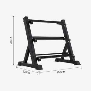 The Altas AL-149 Dumbbell Rack offers efficient organization in your home gym. Has a convenient angled design so you can grab each dumbbell with ease. Easy access: Made of 2 x 2" heavy-duty steel tube frame; Durable powder-coated finish for scratch resistance.
