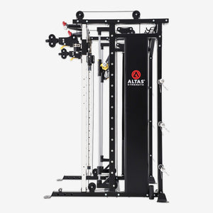 The Altas Strength AL-3087B is built like a club machine but tailored for the home gyms. It combines NINE Strength Training Machines in ONE SINGLE MACHINE, including the Power Rack, Functional Trainer, Smith Machine, Vertical Leg Press, Chin-up Station, Dip Station, Core Trainer, Suspension Trainer, and Low Row.
