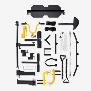Accessories included - Long Bar, Short Bar, Triceps Rope, Ship Rod, Ankle Cuff, Chain, Snap Hook, TRX Training Belt, Hand Holder, leg press attachment.