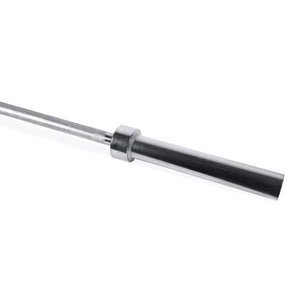 Make the CAP Olympic Solid Chromed Weight Bar part of your daily workout routine. It is ideal for a variety of strength training exercises. Constructed with high-quality steel and finished in chrome, it offers balance and long-lasting performance. It features diamond-knurled hand grips and rotating sleeves. This 6' weight bar has a capacity of 500 lbs. It accommodates 2" pates (collars are not included).