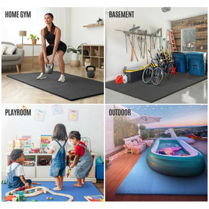 Protect children's knees in playrooms at home or in a childcare setting. Ease the strain on your back from constant standing at your workplace, in your garage or even in front of your kitchen sink. The 1/2", 1/2" or 1" thick high-density foam provides a firm cushion wherever you need one, and the mold and mildew resistance helps protect your floor, as well as whatever furniture or equipment is placed on the workout floor mat.